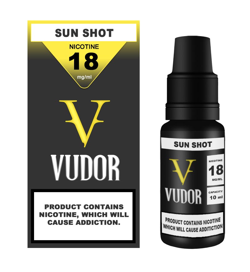 Our SUN SHOT flavoured e liquid is a sweet fizzy orange flavour, made from the finest grade Nicotine in the world. The quality of our Vudor e liquids need only speak for themselves; they are premium quality all the way!